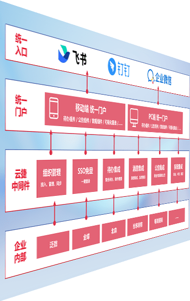 对协作平台提供支持服务,,,支持企业应用与协作平台对接,,,包含组织同步、、、、消息集成、、、待办集成等。。支持目前主流的协作平台:钉钉、、、企微和飞书。。